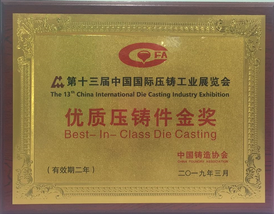 In order to showcase the R&D, manufacturing andtechnological innovation strength of die-casting products for die-castingenterprises, China Casting held the “Gold Award for Quality Die Castings”.During the exhibition, the company exhibited high-tech automotive aluminumalloy die-casting parts and participated in the “Quality Die Casting GoldAward” selection activity. Among them, our company and the new energy vehiclecustomers simultaneously designed and produced the automotive structural partsleft/right front side beams. After the complexity of the product constructionand the exquisite workmanship of the die-casting process, it was highlyrecognized by the judges and experts, and once again won the "Gold Awardfor Quality Casting". The company has won this honor for eight consecutiveyears.