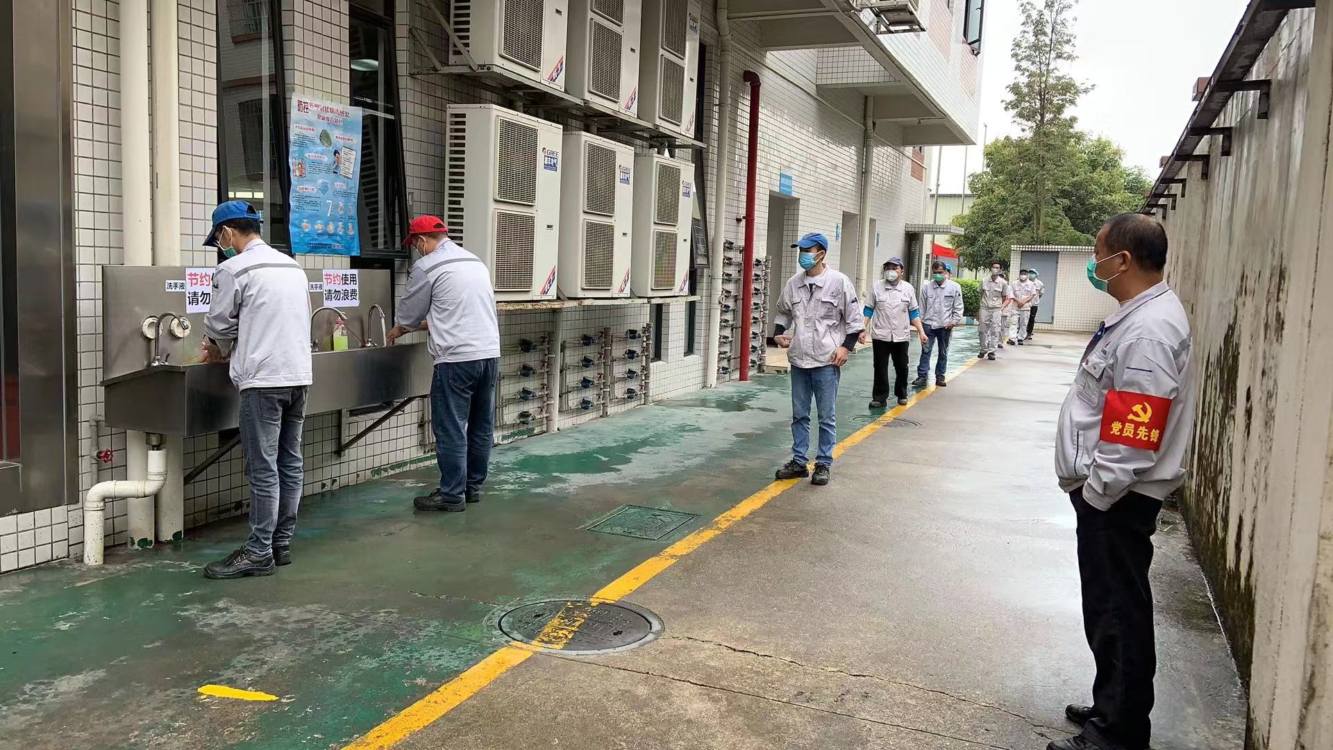 Figure 2: Hongtu Technology Die-Casting (Headquarters) set up vanguard post of Party members to guide the employees to wash hands before meals