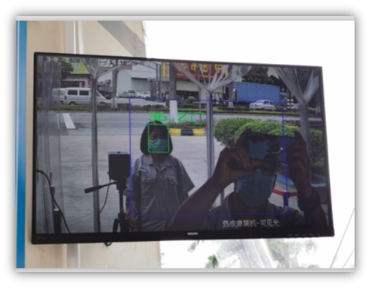 为提高厂区门口的人员通行效率,现已安装一套口罩配戴和热成像体温自动监测仪,既提高了人员的通行效率又提高了检测的准确性。