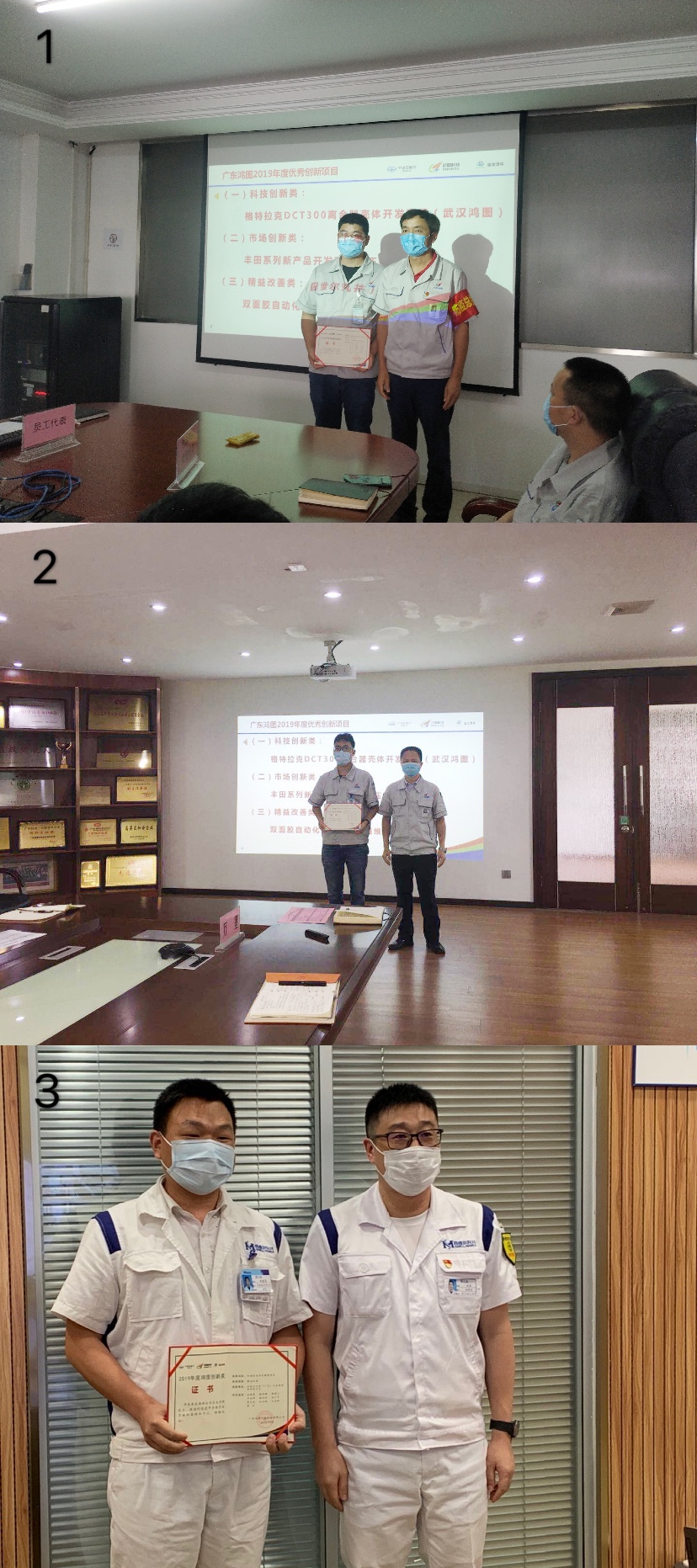 副总裁、董事会秘书莫劲刚宣读优秀创新项目名单,各单位执行董事或总经理为获奖项目代表颁发荣誉证书。优秀创新项目代表分别从科技创新、市场创新、精益改善方面分享项目创新经验。