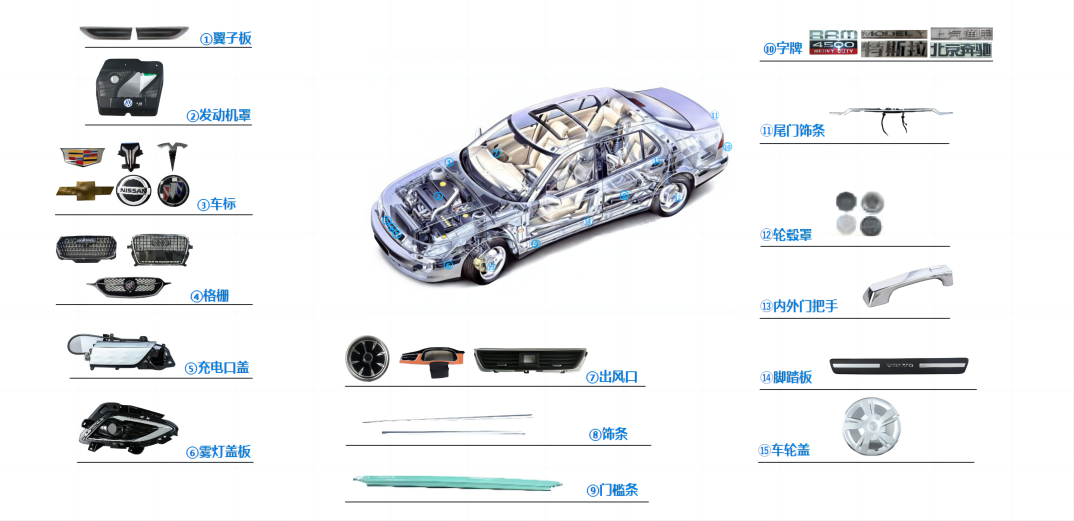 公司不断优化产品结构和市场结构,目前汽车标牌和散热器格栅在国内乘用车市场处于行业领先地位,是通用、福特、菲亚特-克莱斯勒、大众、奔驰、本田、现代、丰田、日产、吉利、长城、奇瑞等国内外知名汽车厂商的一级配套供应商。