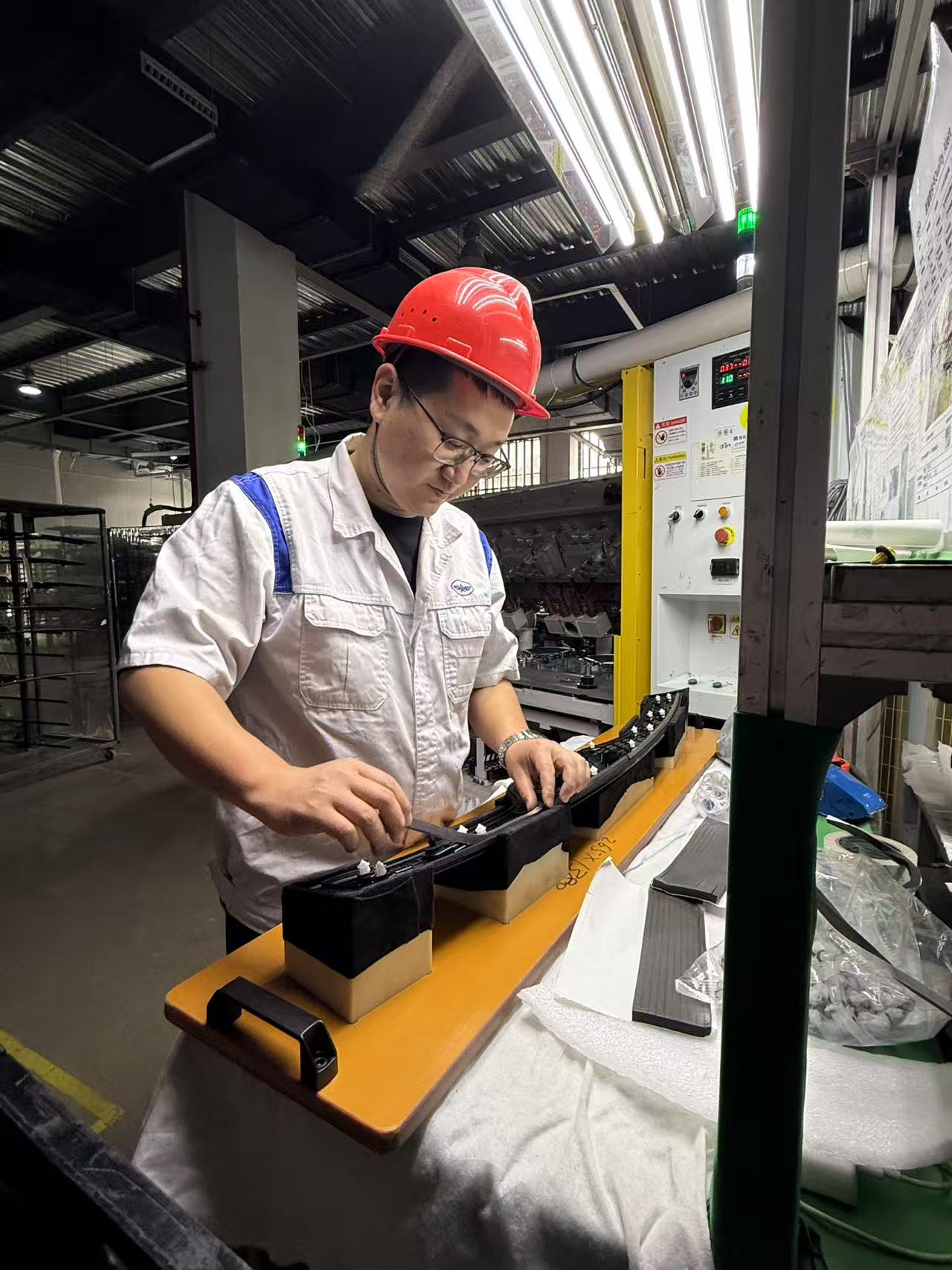 在某中期改款车型的格栅总成项目中,面对“首次试产即量产” 的严苛要求,潘泽嵩带领团队创新性地开展了工艺前置化攻关工作,通过优化20余件装饰部件的装配逻辑,调整挂具点,实现了多型号产品通用化生产,大幅减少了设备投入和场地占用。最终,项目产品顺利实现量产交付,获得了客户的高度认可。在多个紧急项目的攻坚期,面对交付中的巨大压力,潘泽嵩主动驻守生产一线,始终冲锋在前。当生产出现突发状况时,他总能在第一时间赶到现场,与一线员工并肩作战。当技术难题出现时,他又能快速组织攻关,确保交付目标达成。这种“关键时刻顶得上”的担当精神,展现出了潘泽嵩和团队强大的执行力和工作责任感。